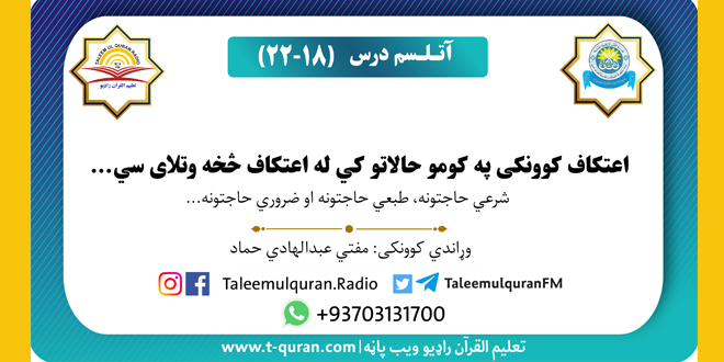 آتلسم درس: وړاندي کوونکی: مفتي عبدالهادي حماد آتلسم درس ویډیويي بڼه: https://youtu.be/aLHFGY0xnGE