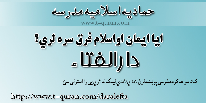 که غواړئ خپله شرعي پوښتنه د حماديې مدرسې دارالافتاء ته را واستوئ او د خپلې شرعي پوښتني جواب تر لاسه کړئ لاندي لینک کښېکاږئ