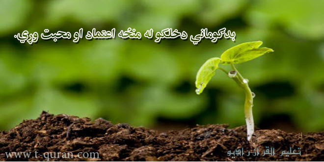 دبد ګومانۍ څخه ځانونه وساتئ، باور وکړئ چي بدګوماني تر ټولو ستر درواغ دي.