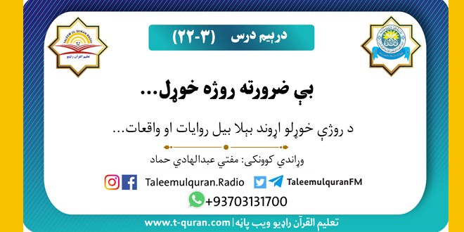 درېیم درس: وړاندي کوونکی: مفتي عبدالهادي حماد د درېیم درس ویډیويي بڼه: https://youtu.be/_r5i3hK4uto