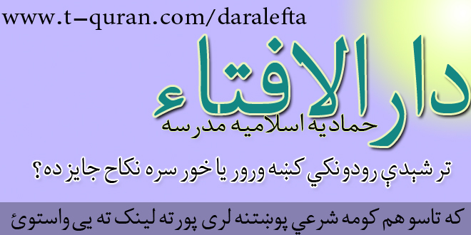 که تاسو هم کومه شرعي پوښتنه لري د دارالافتاء له لارې یی شریکوالای سئ
