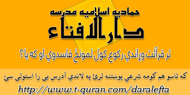 که تاسو هم کومه شرعي پوښتنه لري د دارالافتاء له لارې یی شریکوالای سئ