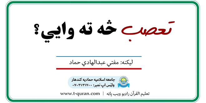 د تعصب لفظ زموږ پر ژبو خورا ډېر خپور دئ که لږ تحقیق ورباندي وسي ښه یې ګڼم!