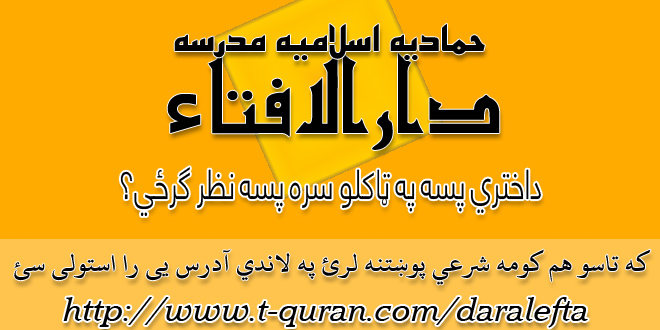 که تاسو هم کومه شرعي پوښتنه لري د دارالافتاء له لارې یی شریکوالای سئ388.1 388.2