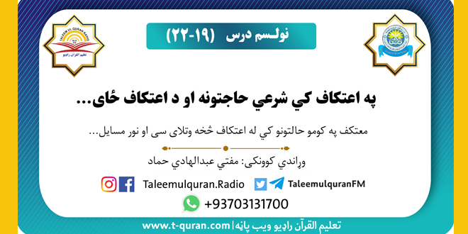 نولسم درس: وړاندي کوونکی: مفتي عبدالهادي د نولسم درس ویډیویي بڼه: https://youtu.be/GBOq0GgZZCM