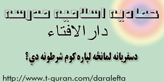 که تاسو هم کومه شرعي پوښتنه لري د دارالافتاء له لارې یی شریکوالای سئ.