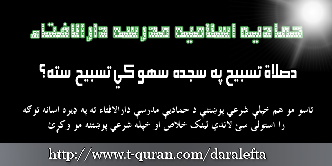 که غواړئ خپله شرعي پوښتنه د حماديې مدرسې دارالافتاء ته را واستوئ او د خپلې شرعي پوښتني جواب تر لاسه کړئ لاندي لینک کښېکاږئ