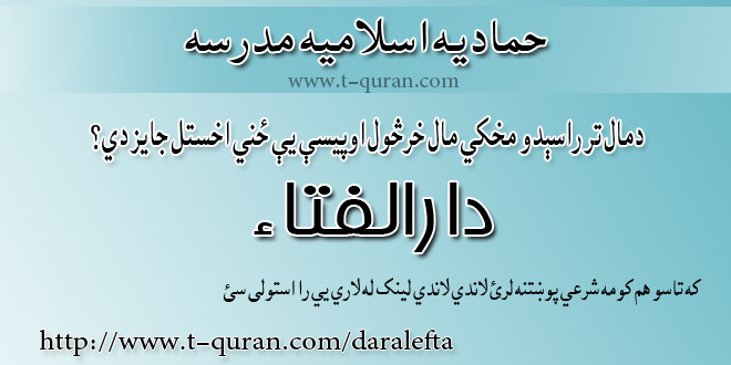 که تاسو هم کومه شرعي پوښتنه لري د دارالافتاء له لارې یی شریکوالای سئ