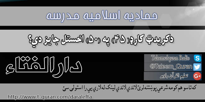 که غواړئ خپله شرعي پوښتنه د حماديې مدرسې دارالافتاء ته را واستوئ او د خپلې شرعي پوښتني جواب تر لاسه کړئ لاندي لینک کښېکاږئ