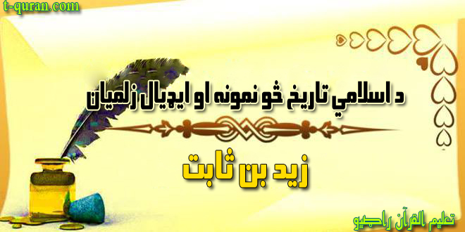 زید بن ثابت رضي الله عنه په دیارلس کلنۍ کې د اسلام خدمت ته وړاندي شواو ځیني روایات وایې چې په یولس کلنۍ کي، او دی یواځنی هغه صحابي دی چې په قرانکریم کې یې نوم راغلی دی: فَلَمَّا قَضَى زَيْدٌ مِّنْهَا وَطَرًا زَوَّجْنَاكَهَا لِكَيْ لاَ يَكُونَ عَلَى الْمُؤْمِنِينَ حَرَجٌ فِي أَزْوَاجِ أَدْعِيَائِهِمْ إِذَا قَضَوْا مِنْهُنَّ وَطَرًا(الاحزاب 37) . زید رضي الله عنه هغه هوښیار او پوه ځلمی و چې د رسول الله صلي الله علیه وسلم په امر یې په اوولسو شپو کې سریاني او یهودي ژبې زده کړې او د رسول الله صلي الله علیه وسلم ترجمان وګرځیدی.