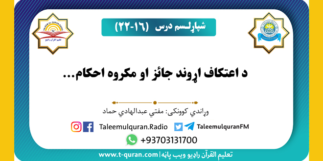 شپاړلسم درس: وړاندي کوونکی: مفتي عبدالهادي حماد د شپاړلسم درس ویډیويي بڼه: https://youtu.be/Prk-45Q2svA