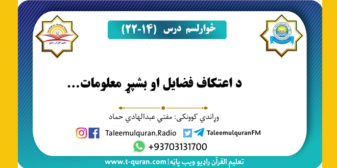 څوارلسم درس: وړاندي کوونکی: مفتي عبدالهادي حماد د څوارلسم درس ویډیويي بڼه: https://youtu.be/L7PDhTlWuuk
