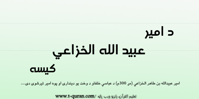 امیر عبیدالله بن طاهر الخزاعي (مړ 300م) د عباسي خلفاو د وخت یو دینداری او پوه امیر تيرشوی دی، ویل کیږي یوه ورځ د خپلې ماڼۍ بام ته وخوت او په خپل ګاونډ کې یې دوګی ولید چې له کوم کور نه پورته کیدی، پوښتنه یې وکړه چې دا دوګ د څه شي دی؟ چا ورته وویل: شاید په کوم کور کې به څوک ډوډۍ پخوي، ده ورته وویل: ایا زموږ ګاونډیان د ډوډۍ پخولو تکلیف ګالي؟!.