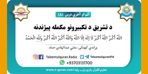 آتم او آخري درس: د تعلیم لقرآن راډیو د ویب پاڼي درنو کتونکو او لوستونکو! د لوی اختر او قربانۍ د احکامو اړوند همدا آخري درس دی، هیله ده چي درته ګټور به تمام سوي وي. د لاندي فایل په لومړيو کي مفتي صاحب د تشریق تکبیرونو اړوند بشپړه رڼا اچولې او ور پسې یې … Continue reading د تشریق د تکبیرونو مکمله پیژندنه او د لوی اختر د لمانځه طریقه