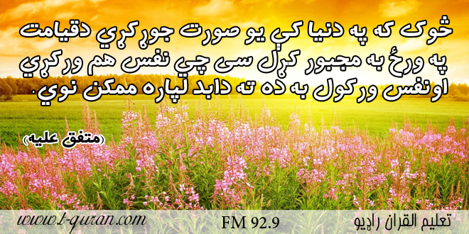 رسول الله (ص) فرمايى: څوك كه په دنيا كې يو صورت جوړكړي دقيامت په ورځ به مجبور كړل سى چي نفس هم وركړي اونفس وركول به ده ته دابد لپاره ممكن نوي.(متفق عليه)