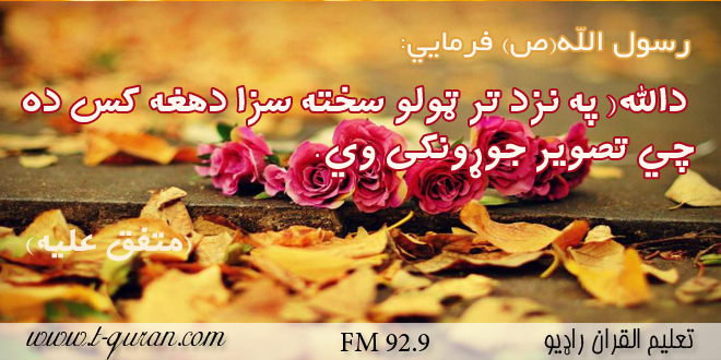 رسول الله(ص) فرمايي: دالله( په نزد تر ټولو سخته سزا دهغه کس ده چي تصوير جوړونکى وي.(متفق عليه)