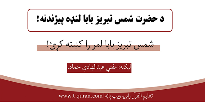۱: د شمس تبريز بابا پوره نوم شمس الدین التبريزي دئ د ايران په تبريز ښار کي په ۱۱۸۵ ميلادي کي زېږېدلی دئ د پلار نوم يې علاء الدين دئ.