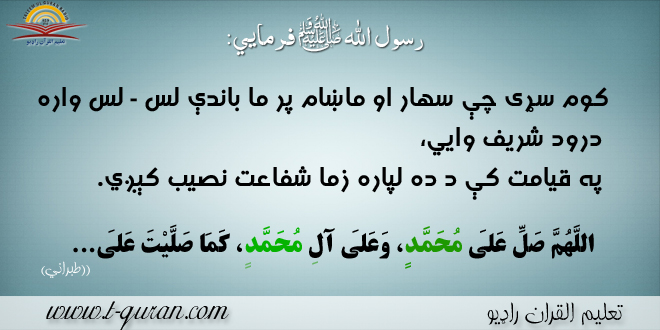 کوم سړی چې سهار او ماښام پر ما باندې لس – لس واره درود شریف وایي، په قیامت کې د ده لپاره زما شفاعت نصیب کېږي. (طبراني)