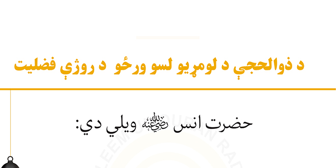 حضرت انس رضی الله عنه ويلي دي : دلوي اختردمياشتي دلومړيو لسو ورځو روژه دومره ثواب لري چي هره ورځ يې دزرو ورځو سره په ثواب كښي برابره ده اودعرفات ورځ يې دلسوزرو ورځوسره په ثواب كښي برابره ده ([1])