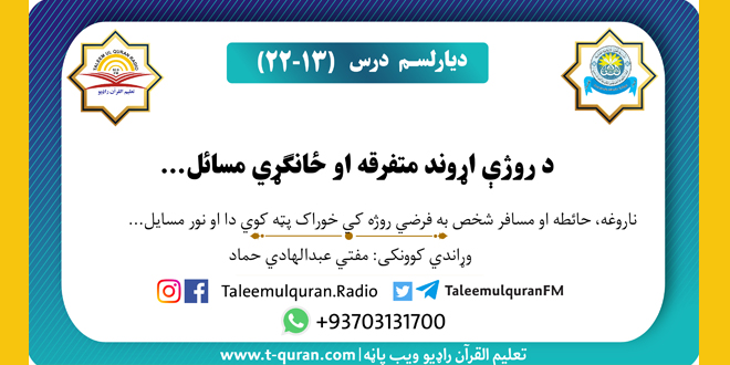 دیارلسم درس: وړاندي کوونکی: مفتي عبدالهادي حماد د دیارلسم درس ویډیویي بڼه: https://youtu.be/CvTfK1D9HqY