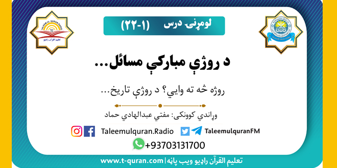 مخپاڼه / درسی خپرونی / د روژې مبارکې مسائل / د روژې مبارکې مسائل (۱-۲۲)