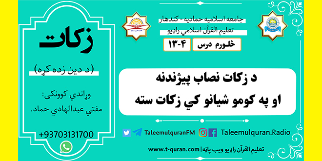مخپاڼه / درسی خپرونی / د زکات نصاب پيژندنه او په کومو شیانو کي زکات سته|۴-۱۳|