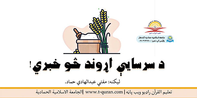 رسول الله صلی الله علیه وسلم فرمايي: سرسایه روژه نیونکی د تېروتنو څخه پاکوي او دمسکینانو لپاره خوراکه ده،څوک…الحديث