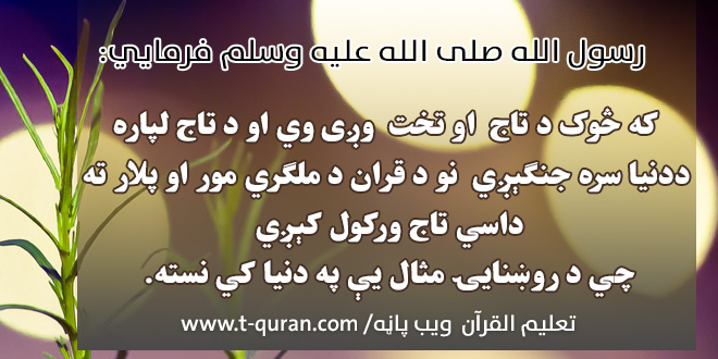 که څوک د تاج  او تخت  وږى وي او د تاج لپاره ددنيا سره جنګېږي  نو د قران د ملګري مور او پلار ته داسي تاج ورکول کېږي  چي د روښنايۍ مثال يې په دنيا کي نسته.