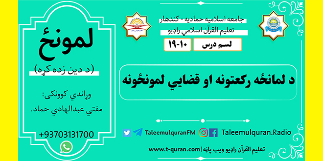 مخپاڼه / درسی خپرونی / د لمانځه رکعتونه او قضایي لمونځونه|۱۰-۱۹|