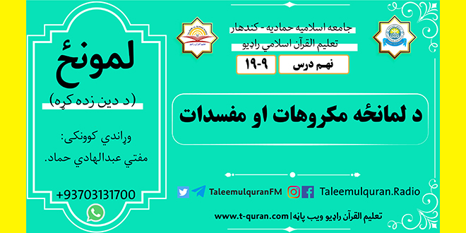 مخپاڼه / درسی خپرونی / د لمانځه مکروهات او مفسدات|۹-۱۹|