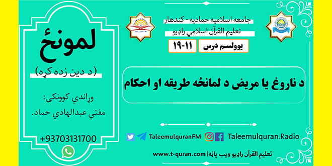 د دین زده کړه (لمونځ/ نماز) یوولسم درس: وړاندي کوونکی: مفتي عبدالهادي حماد د یوولسم درس ویډیویي بڼه: https://youtu.be/5_HTrwnJ6Zk