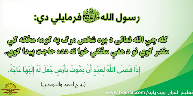 کله چي الله تعالی د یوه شخص مرګ په کومه مځکه کي مقدر کوي نو د هغې مځکي خوا ته دده حاجت پیدا کوي.