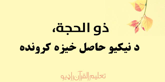 راځئ د دې مبارکې لسیزې په عمل صالح (روژو، تهجدو، تکبیراتو او تسبیحاتو، او…) سره خپل ځان د حاجیانو په کتار کې راولوو او خپل کلي او وطن کې د مکې اومدینې فضا جوړه کړو.