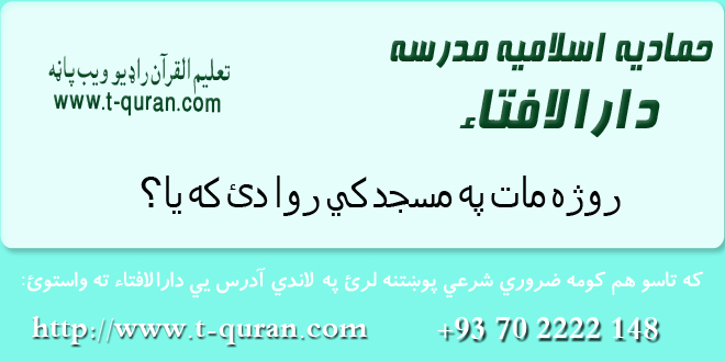 مخپاڼه / ستاسو شرعی پوښتنی او جوابونه / روژه / روژه مات په مسجد کي روا دئ که یا؟