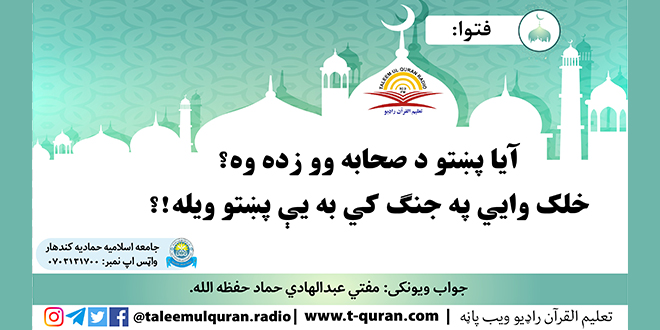 جواب ويونکی: مفتي عبدالهادي حماد د تعلیم القرآن راډیو ویب یوټیوب چینل سبسکرایب کړی https://youtu.be/EH8YrQggfIE