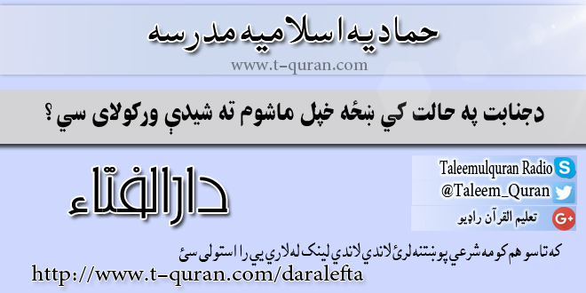 فتوا: دجنابت په حالت کي ښځه خپل ماشوم ته شیدې ورکولای سي؟ مې 11, 2017 ستاسو شرعی پوښتنی او جوابونه, طهارت (پاکي) 1,984 لیدنی شریکول Facebook Google +
