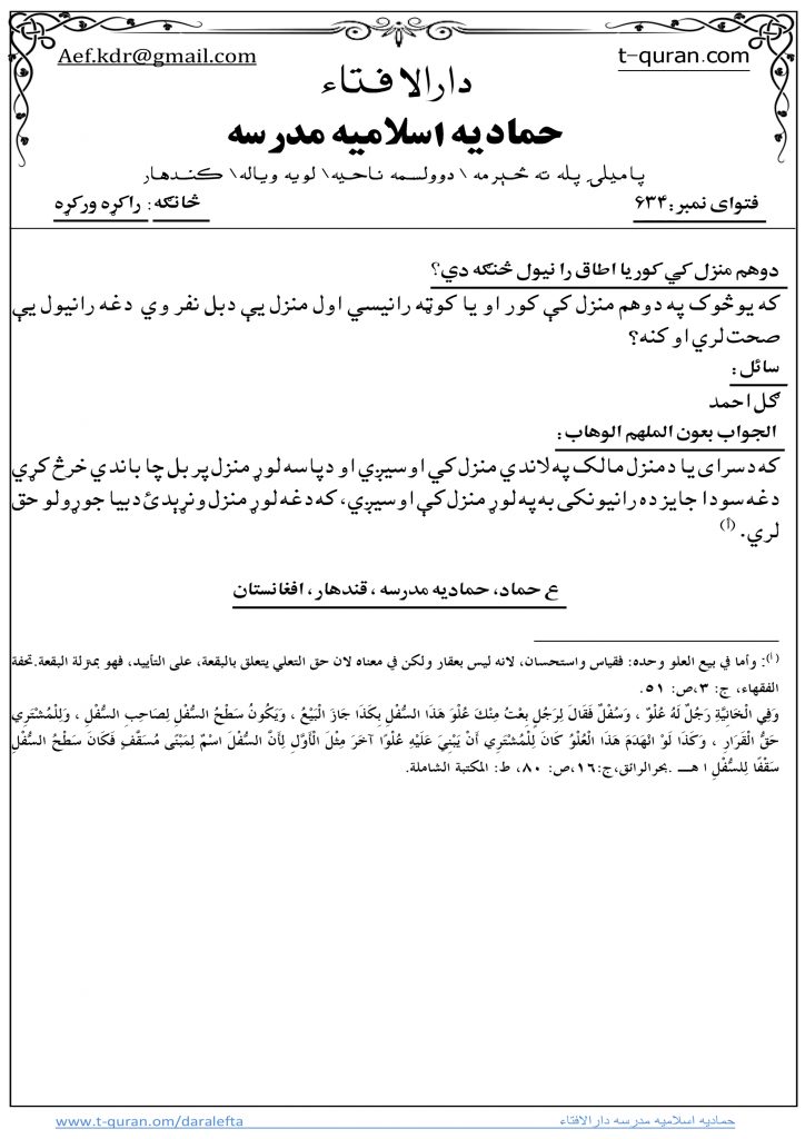 جواب ويونکی: مفتي عبدالهادي حماد. ستاسو د شرعي پوښتنو جوابونه کوم چي مو د حمادیه …