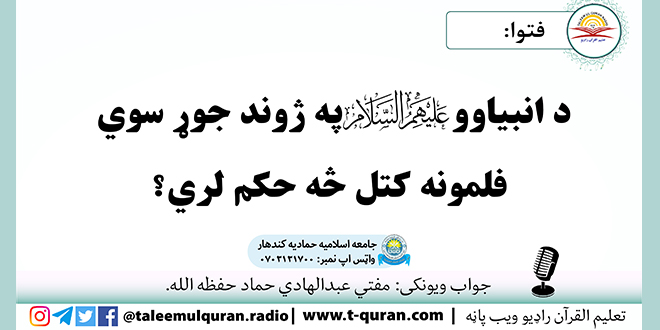 جواب ويونکی: مفتي عبدالهادي حماد. ستاسو د شرعي پوښتنو جوابونه کوم چي مو د حمادیه …
