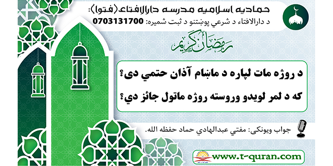 جواب ويونکی: مفتي عبدالهادي حماد د تعلیم القرآن اسلامي راډیو یوټیوب چینل هم در سره سبسکرایب کړی https://youtu.be/Y_Ze8VA_CLM
