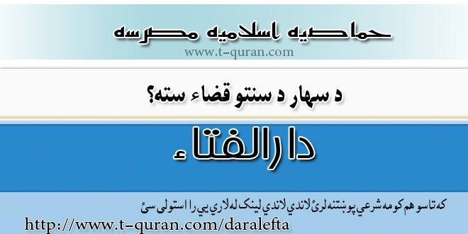 فتوا: د سهار د سنتو قضاء سته؟ مې 7, 2017 ستاسو شرعی پوښتنی او جوابونه, لمونځ 1,763 لیدنی شریکول Facebook Google +
