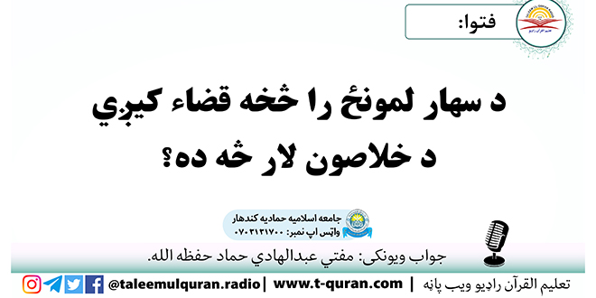 جواب ويونکی: مفتي عبدالهادي حماد د تعلیم القرآن اسلامي راډيو یوټیوب چینل سبسکرایب کړی https://youtu.be/pD7hfVjLzBk
