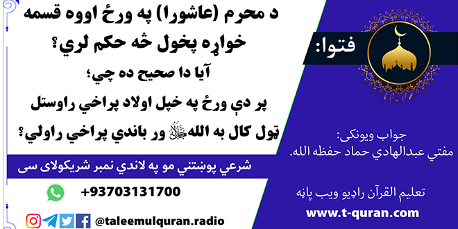 جواب ويونکی: مفتي عبدالهادي حماد د همدې فتوا ویډیویي بڼه دلته وګوری: https://youtu.be/VWM9XGKBNEk