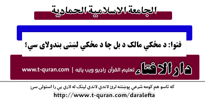 جواب ويونکی: مفتي عبدالهادي حماد. ستاسو د شرعي پوښتنو جوابونه کوم چي مو د حمادیه …