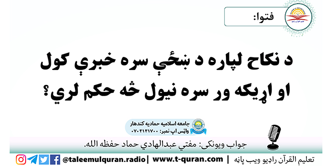جواب ويونکی: مفتي عبدالهادي حماد. ستاسو د شرعي پوښتنو جوابونه کوم چي مو د حمادیه …