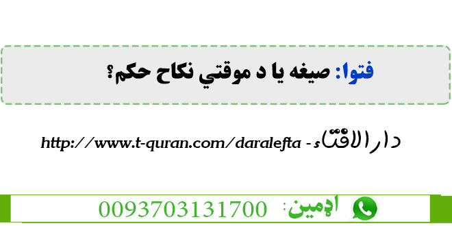 فتوا: صیغه یا د موقتي نکاح حکم؟ جولای 15, 2020 Uncategorized 1,063 لیدنی جواب ويونکی: مفتي عبدالهادي حماد حفظه الله شریکول Facebook Google +