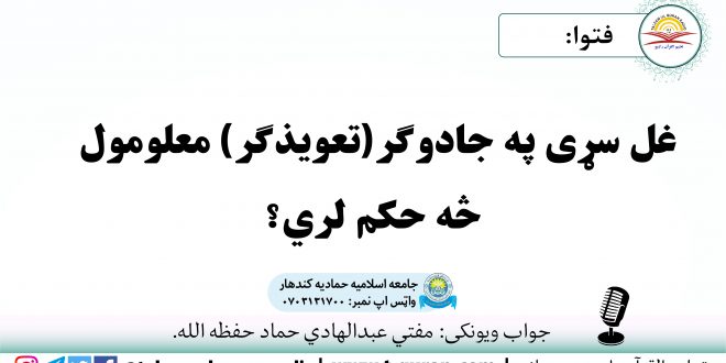 جواب ويونکی: مفتي عبدالهادي حمادستاسو د شرعي پوښتنو جوابونه کوم چي مو د حمادیه مدرسې د واتس په ګروفونو کي شریکي کړي دي.که تاسي هم کومه شرعي پوښتنه لری زموږ سره یې د واټس اپ په لاندي شمیره شریکولای سئ:93703131700+د تعلیم القرآن اسلامي راډیو یوټیوب چینل هم در سره سبسکرایب کړی. https://youtu.be/_tRbNWMkqa0