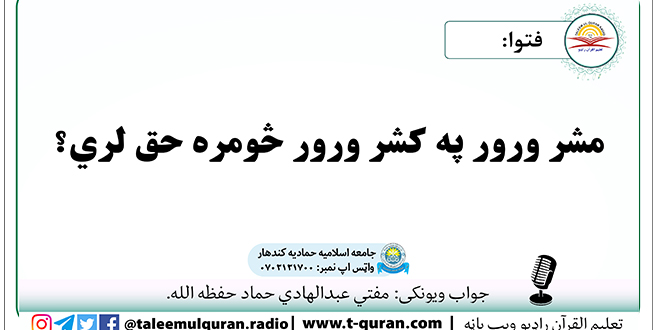 جواب ويونکی: مفتي عبدالهادي حماد د تعلیم القرآن اسلامي ارډیو یوټیوب چینل هم سبسکرایب کړی https://youtu.be/evcfRuXZDqM