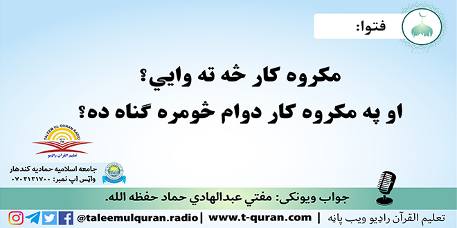 جواب ويونکی: مفتي عبدالهادي حماد د تعلیم القرآن راډیو یوټیوب چینل سبسکرایب کړی https://youtu.be/X1BDiLAdo0E