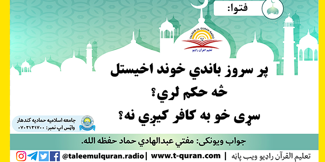 جواب ويونکی: مفتي عبدالهادي حماد د تعلیم القرآن راډیو یوټیوب چینل سبسکرایب کړی https://youtu.be/TK7rGRWJw3U