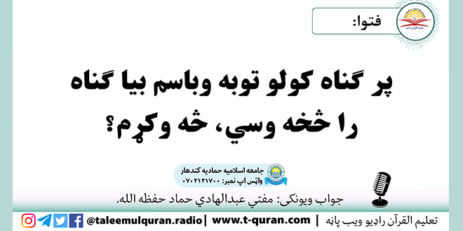 مخپاڼه / ستاسو شرعی پوښتنی او جوابونه / اجاره / بیلا بیل / فتوا: پر ګناه کولو توبه وباسم بیا ګناه را څخه وسي، څه وکړم؟
